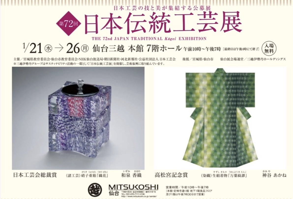2019年5月21日(火)より5月26日(日)まで、札幌三越本店本館10階催物会場に於いて、第59回東日本伝統工芸展札幌巡回展を開催します。